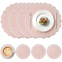Cotton Linen Placemats Coaster 15" Scalloped Embroidery Heat Resistant Placemats Double Layered Machine Washable Table Mat Set