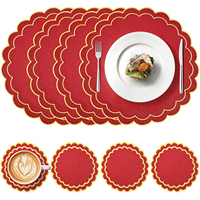 Scalloped Embroidery Heat Resistant Placemats Double Layered Machine Washable Table Mat Set Rustic Dinner Table Decoration