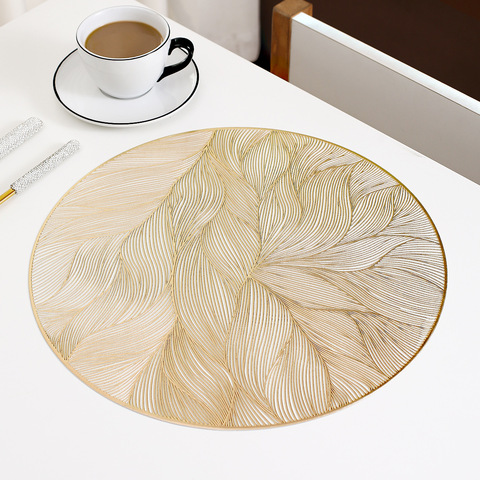 Tabletex sang trọng vàng kim loại placemats vòng hiện đại PVC bảng Mat cho phòng ăn cho bàn tròn không thấm nước nơi thảm