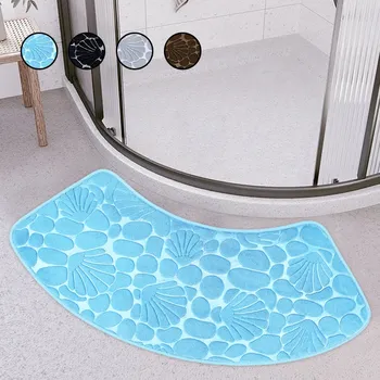Tapis de salle de bain en PVC microfibre tapis de douche incurvé absorbant antidérapant avec tapis de galets de coquille pour l'utilisation des toilettes au sol